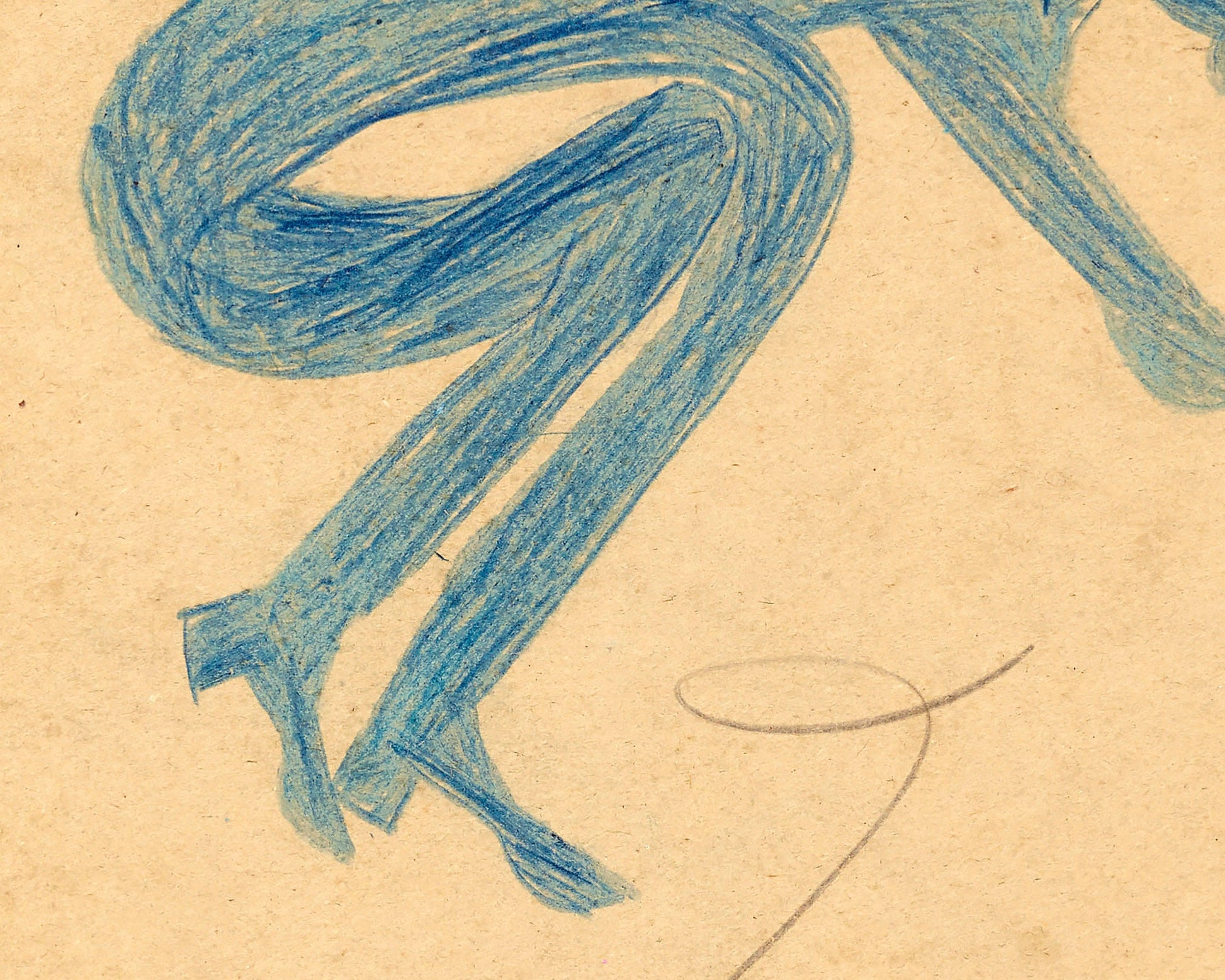 Bill Traylor Americana art | Crouching Man Pointing | Naive folk art | Outsider wall art | African American self-taught artist