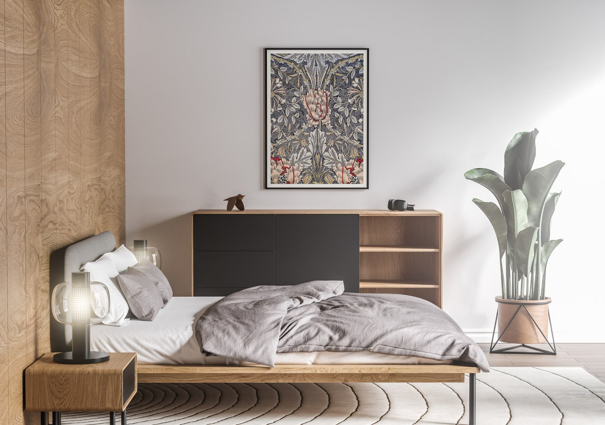 William Morris Exhibition Poster, William Morris Print, Art Nouveau, Honeysuckle Pattern, Fabric Textured Background, Home Decor, Victorian