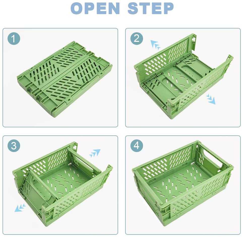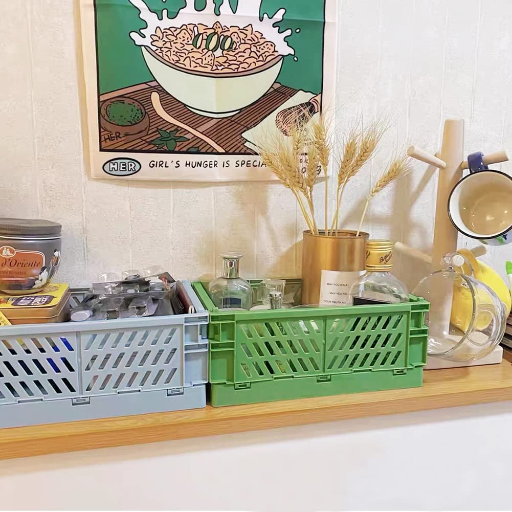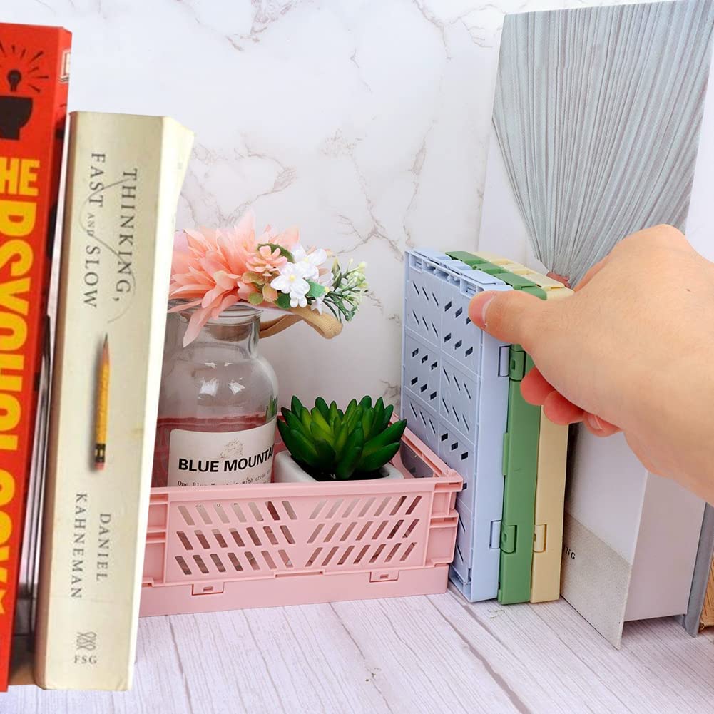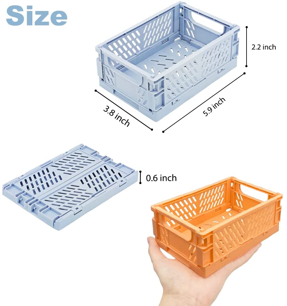 - 5 pack Stacking Folding Storage Baskets - Size: 5.9" x 3.8" x 2.2". Blue/Yellow/Green/Pink/Orange (to store different types of items in different color baskets, you can quickly narrow the search range when you are looking for items, without wasting time in repeatedly rummaging)