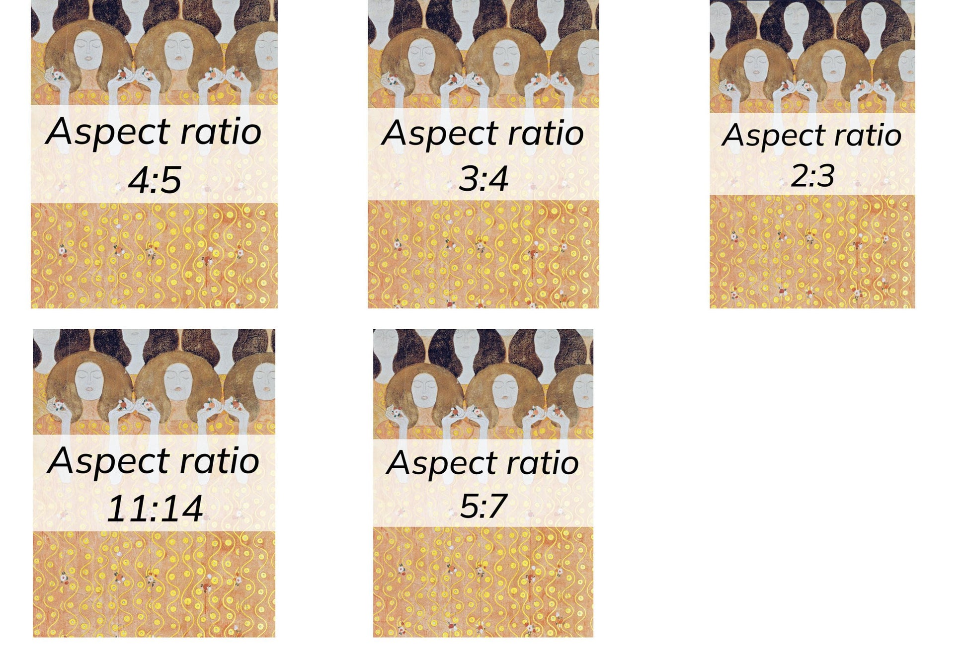 - Portrait 4:5 (canvas sizes in inches: 4x5, 8x10, 16x20, 24x30, 40x50)