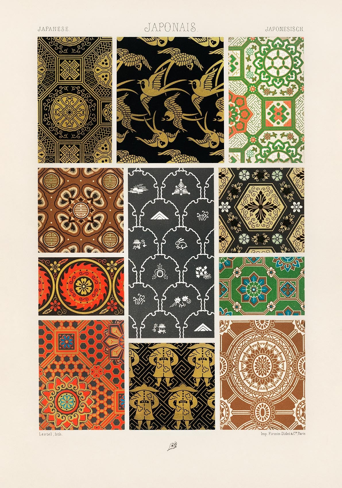 Japanese Engraving Poster All posters and art prints are printed in-house on archival heavyweight matte paper, on wide format Canon professional series fine art pigment-based printers.Oversized and custom sized order requests are always welcome, however additional processing and shippings times are typically required. --- wholesale_readyAlbert Racinet, architectural design, Art Pattern, Art Poster, colorful cultural engravings, colourful cultural engraving, culture design, Cultures, Engravings, fabric, japanese, Japanese Art, Japanese Poster, Japanese Print, Japonais, Japonais Art, Living room decor, mosaic, NEW, Patternjpn10209