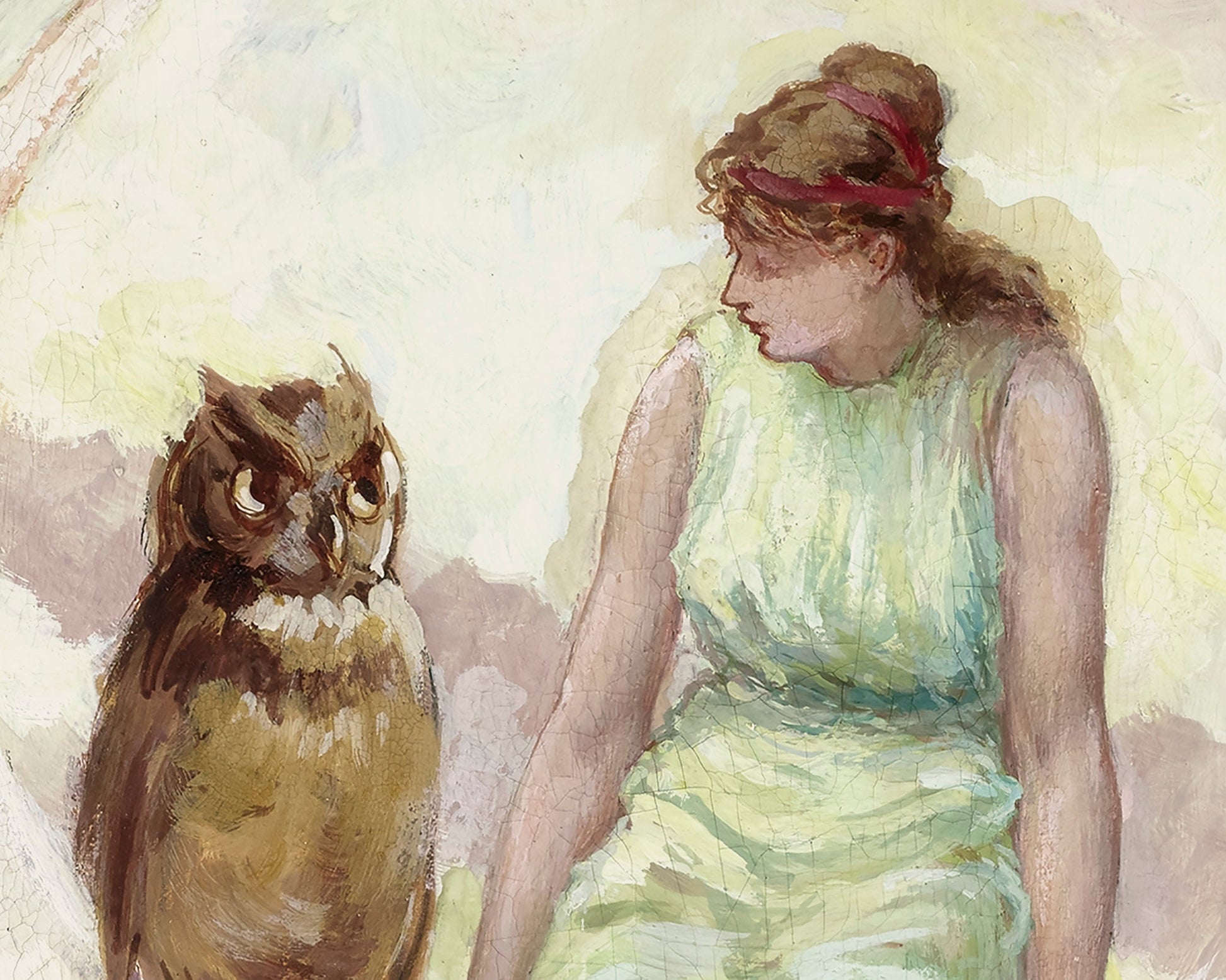 Moon goddess art print | The Witch's Daughter | Vintage owl on crescent moon | Fairytale wall art | Celestial painting | Frederick Church