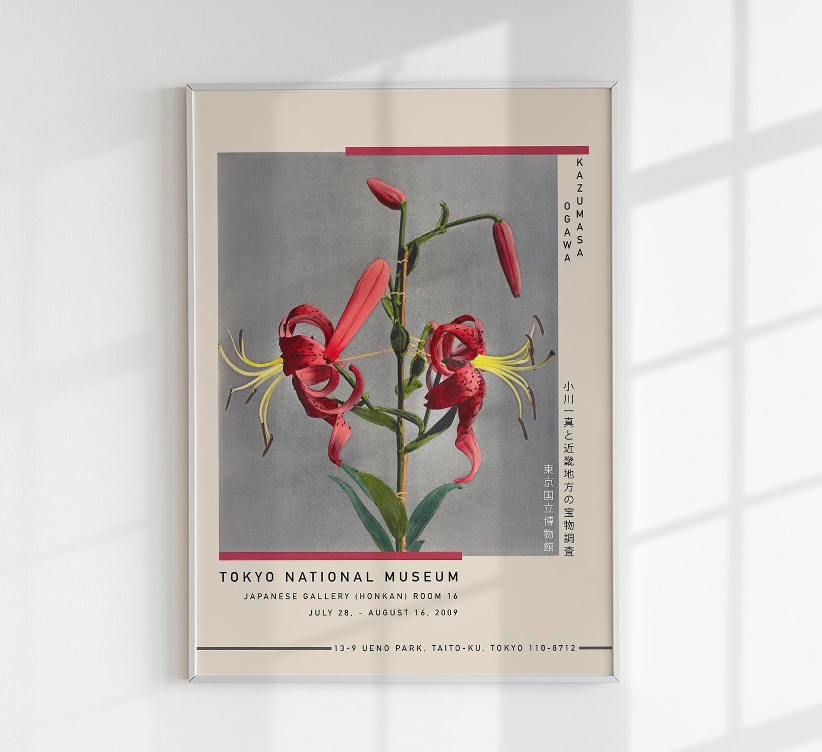 Red Lily by Kazumasa Exhibition Poster All posters and art prints are printed in-house on archival heavyweight matte paper, on wide format Canon professional series fine art pigment-based printers.Oversized and custom sized order requests are always welcome, however additional processing and shippings times are typically required. --- wholesale_readyExhibition Poster, flower, Home decor, Japanese Art, Japanese Poster, Japanese Print, Japanese Woodblock, Kazumasa Ogawa, Living Room, Living Room Art, Living room decor, new, Ogawa, red, red lily, spring, Tokyo National Museum, Ukiyo-e, Ukiyoe Modern, Vintage Poster, Wall Art, woodblock, Woodcut Printjpn10267