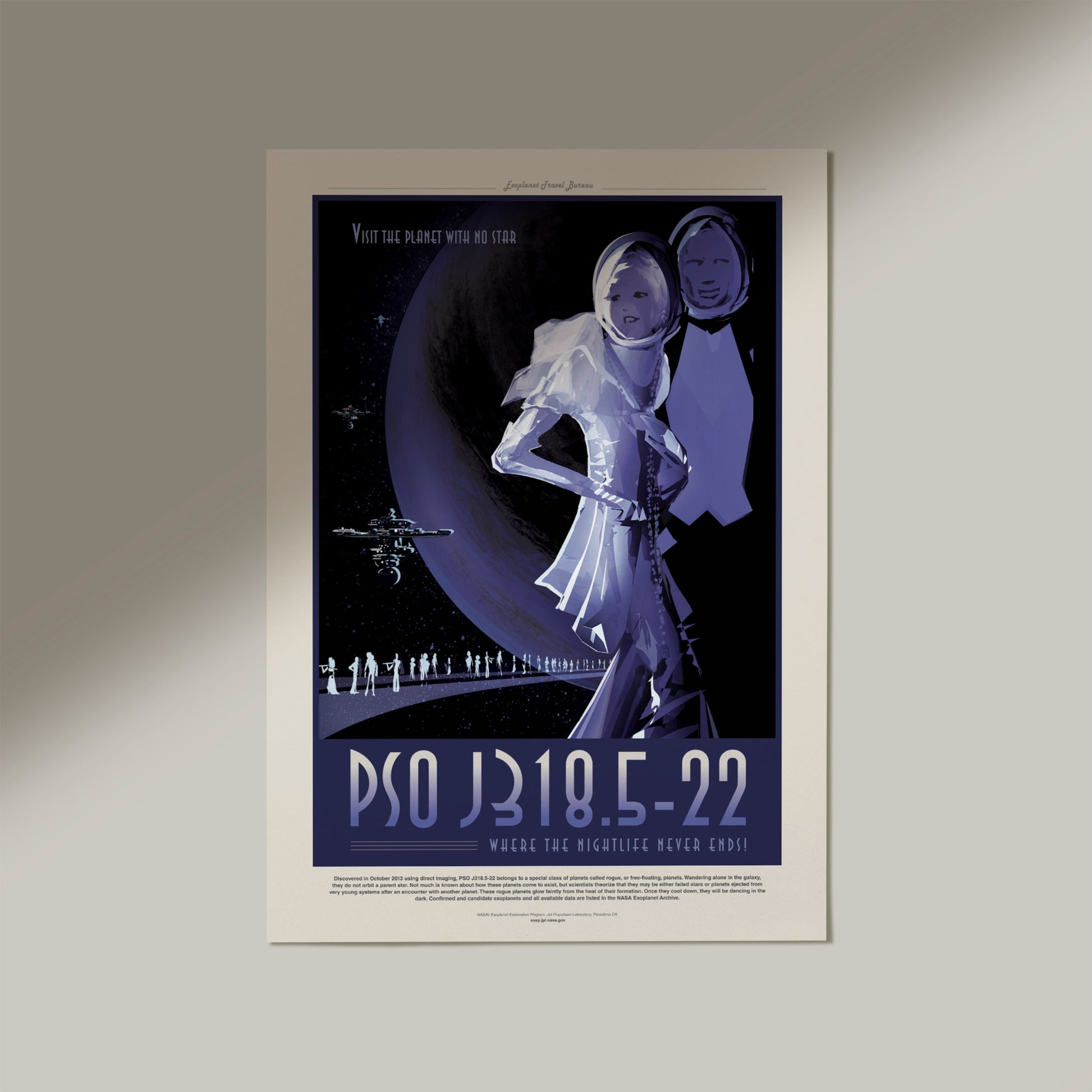 Póster de viaje de la NASA: J318.5-22, el planeta sin sol