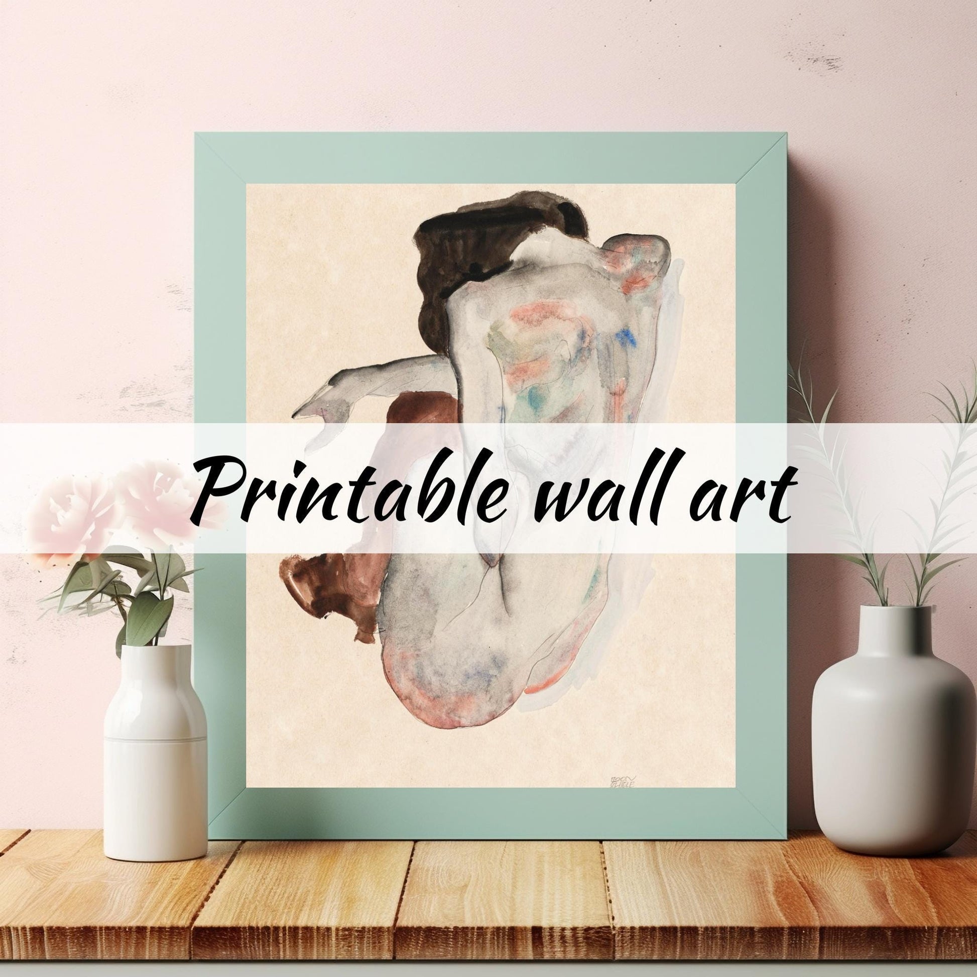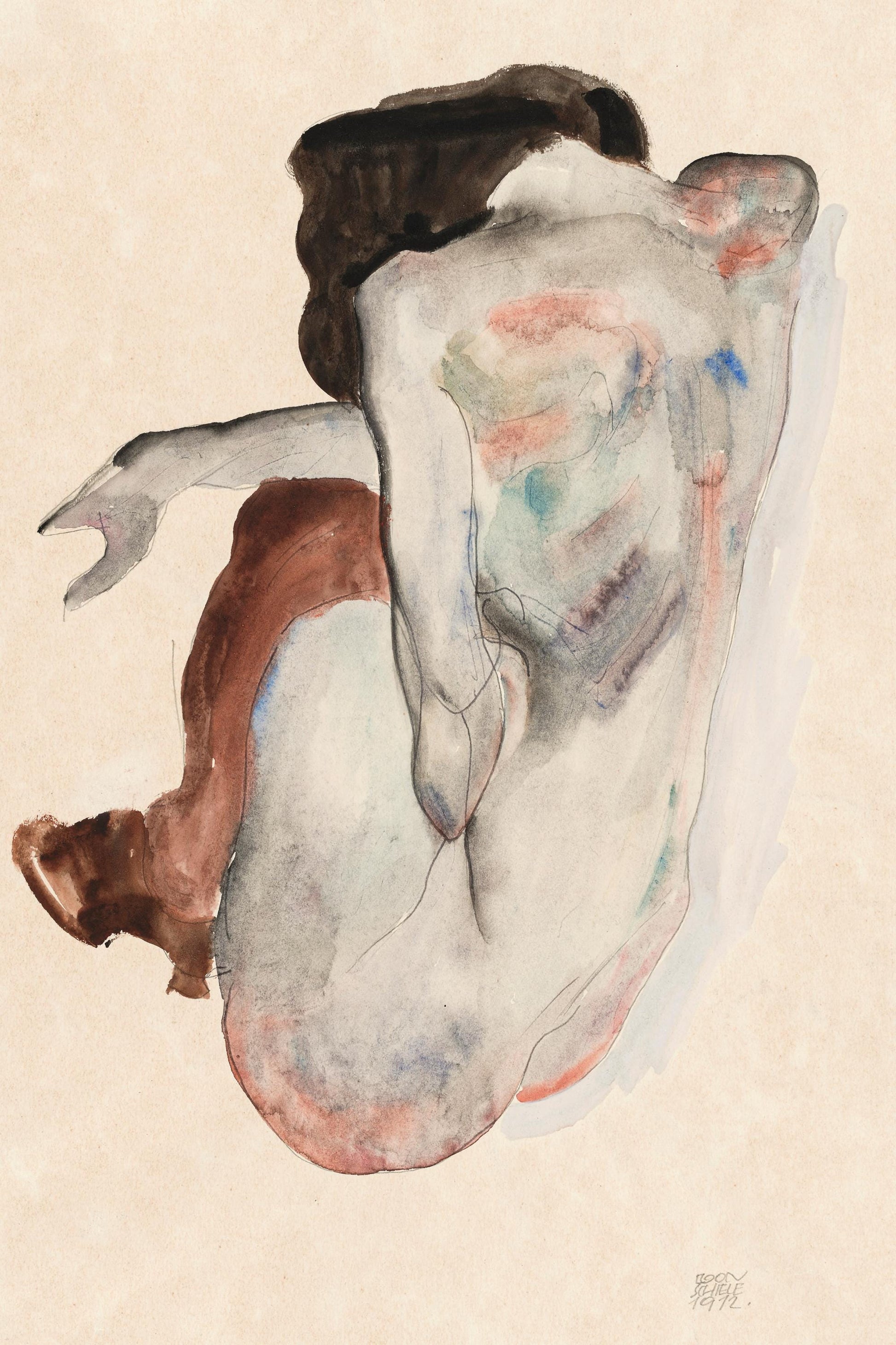 Crouching Nude in Shoes and Black Stockings by Egon Schiele - Digital Download Wall Art - Printable Instant Download