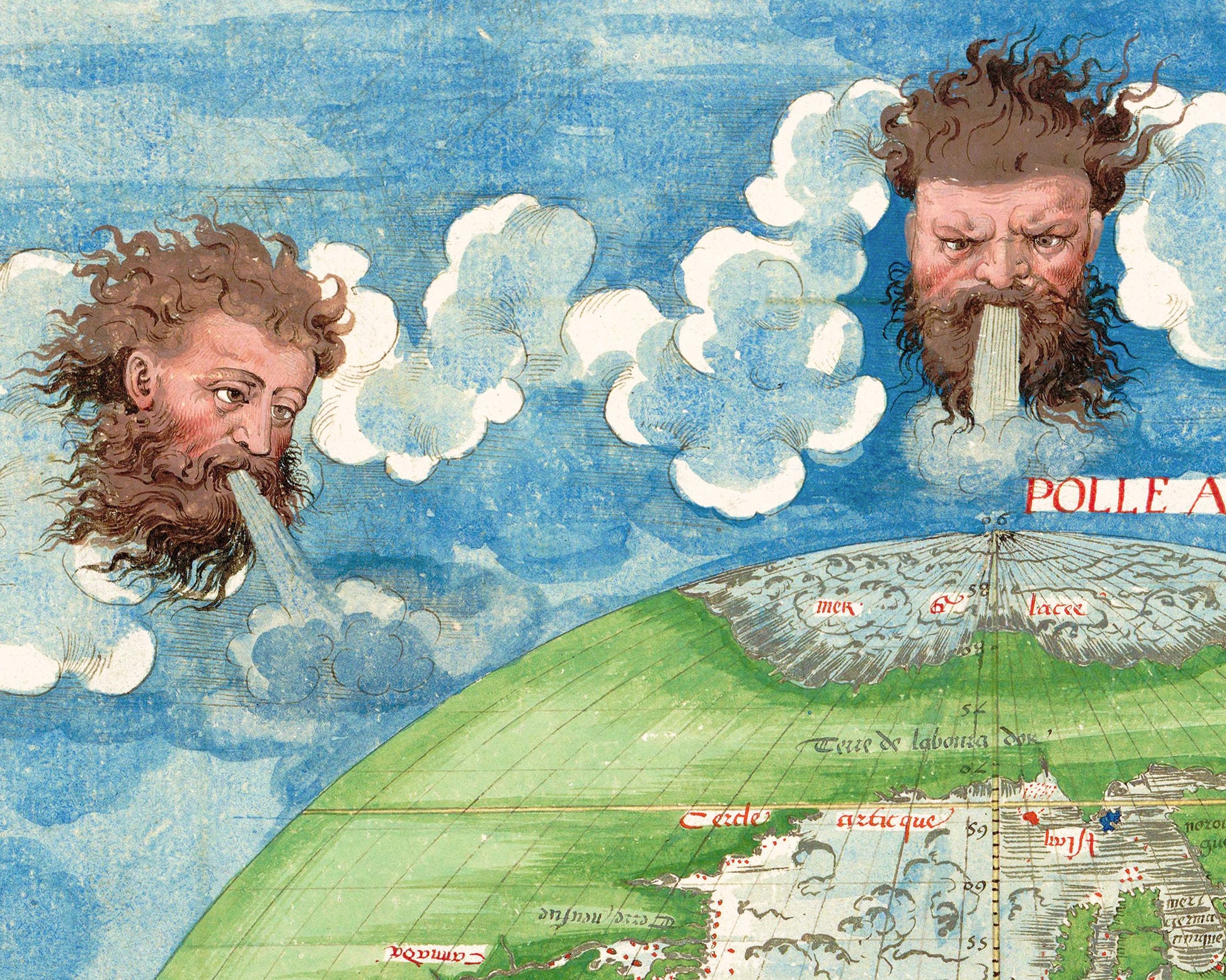 Ancient world map | Map of the winds | North America, South America, Europe, Africa, poles | Vintage French cartography | Travelers wall art