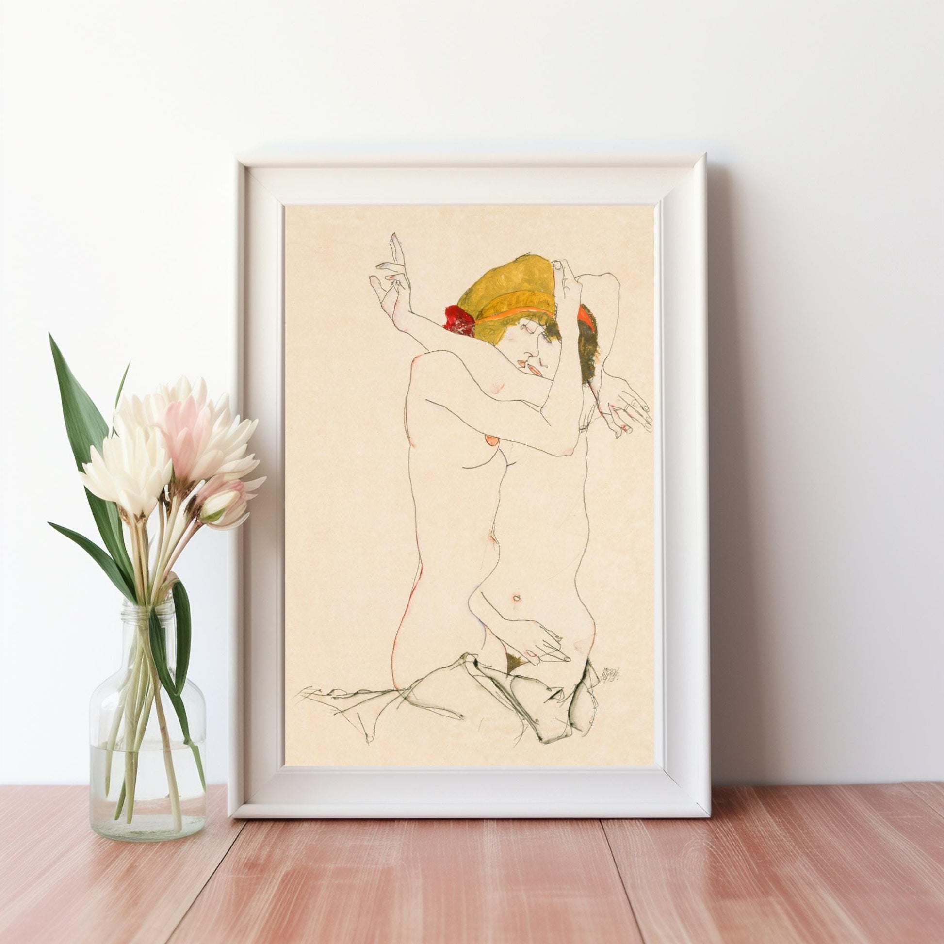 Discover the captivating beauty of "Two Women Embracing 1913 by Egon Schiele." This exquisite digital download wall art captures the essence of modern erotic art, perfect for adding a touch of sophistication to any space. Ideal for LGBTQ art enthusiasts, this printable artwork is a stunning blend of vintage and contemporary styles. Instantly download and print this unique wall decor to elevate your home or office with fine art that celebrates feminine intimacy and connection.
