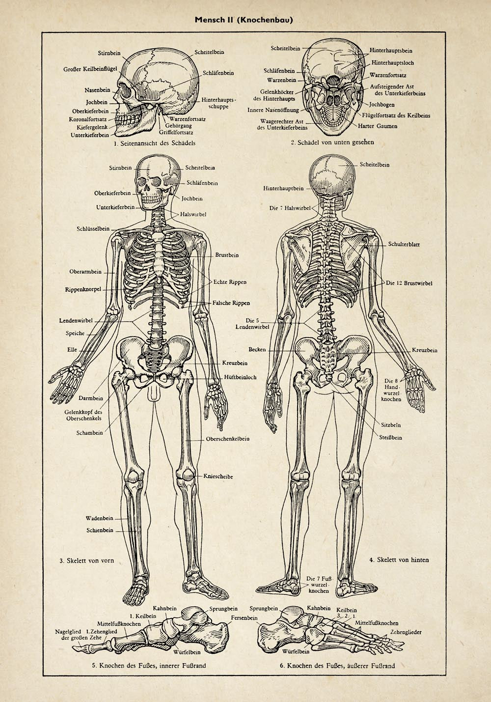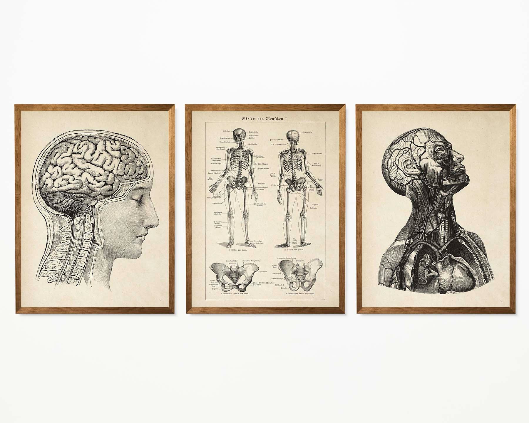 Vintage Anatomy Posters "Head" Set of 3 Prints