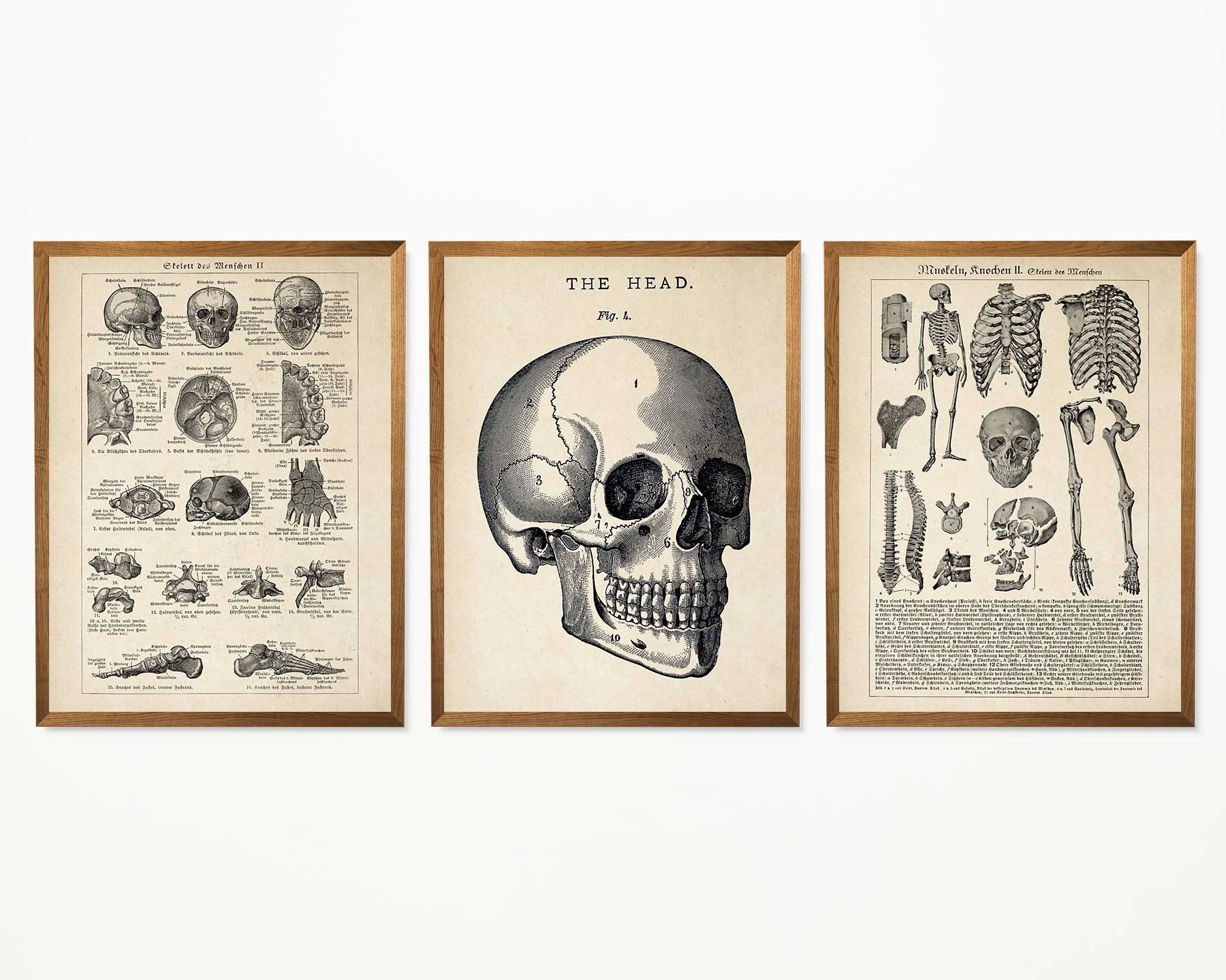 Vintage Anatomy Posters "SKULL" Set of 3 Prints
