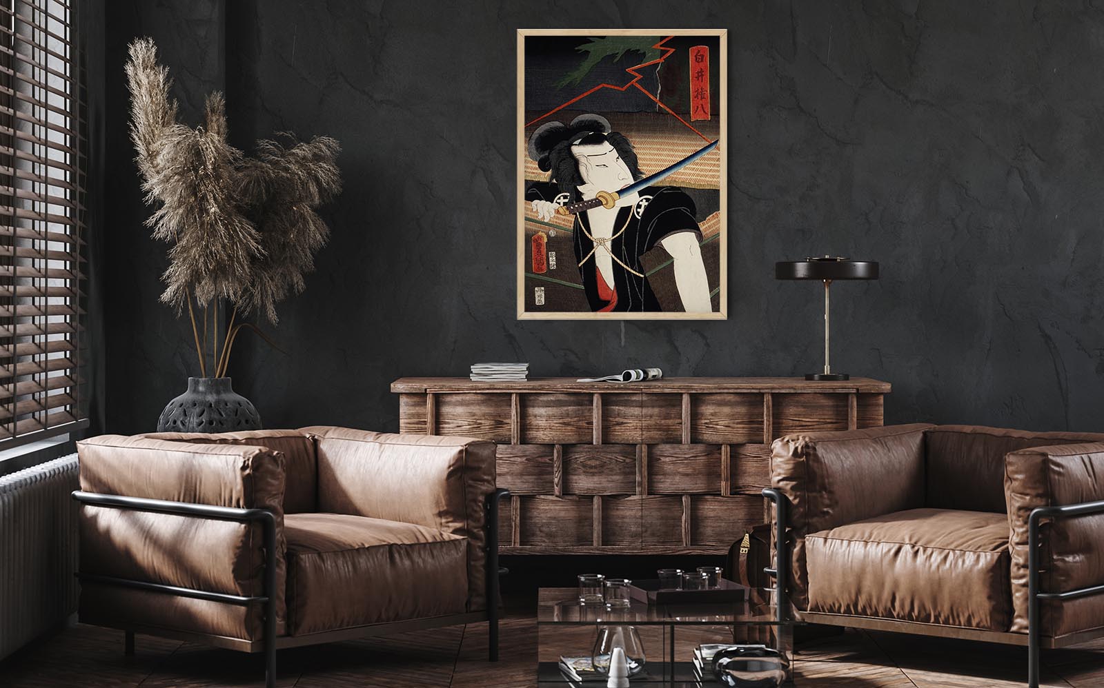 Samurai and Blue Sword by Kunichika All posters and art prints are printed in-house on archival heavyweight matte paper, on wide format Canon professional series fine art pigment-based printers.Oversized and custom sized order requests are always welcome, however additional processing and shippings times are typically required. --- wholesale_readyAsian Art, Black, Japanese Art, Japanese Poster, Japanese Print, Japanese retro Art, Japanese Woodblock, Kunichika, Oriental Art, Samurai, Sword, Ukiyo-e, Ukiyoe Modern, Vintage Japanese Art, Vintage Poster, Wall Art, woodblock, Woodcut Print, woodprintjpn10275