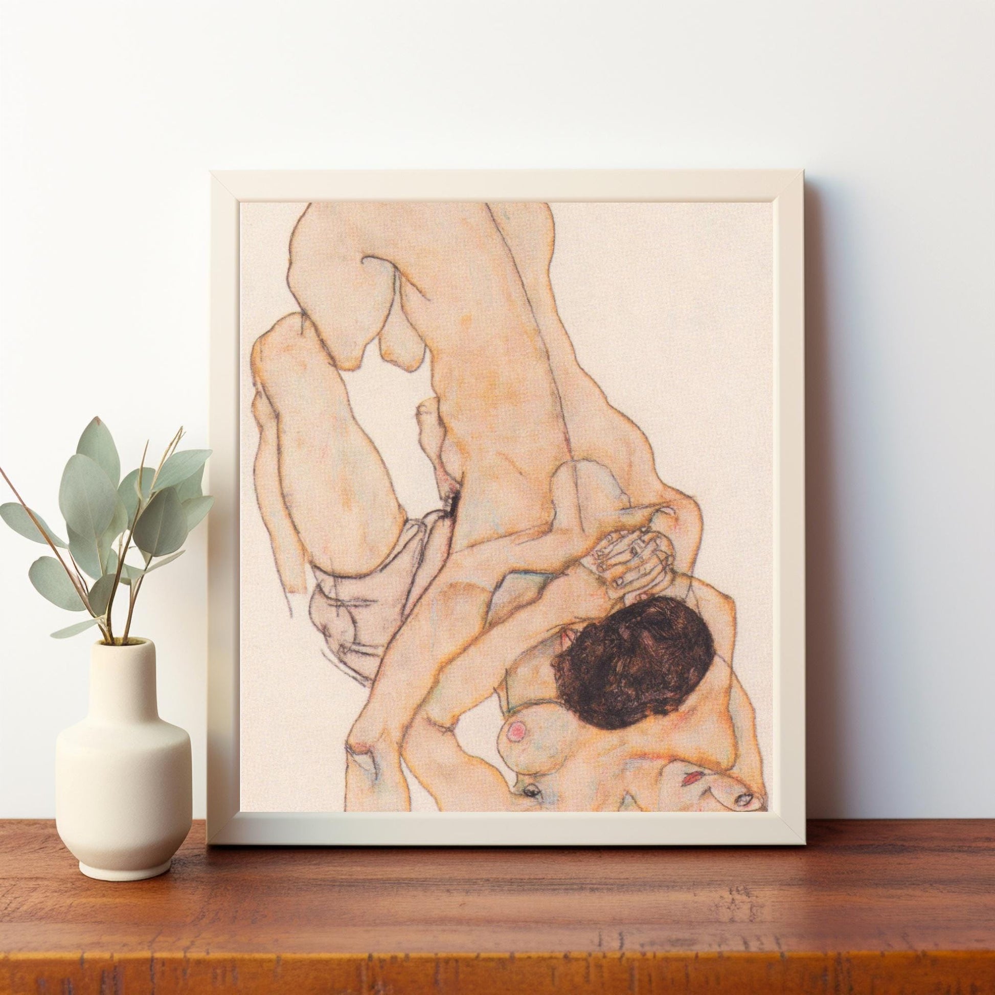 Queer Erotic Art by Egon Schiele Instant Download Lesbian Lovers Watercolor Art Print | Expressionist Erotic Wall Art | LGBTQIA+ Artwork