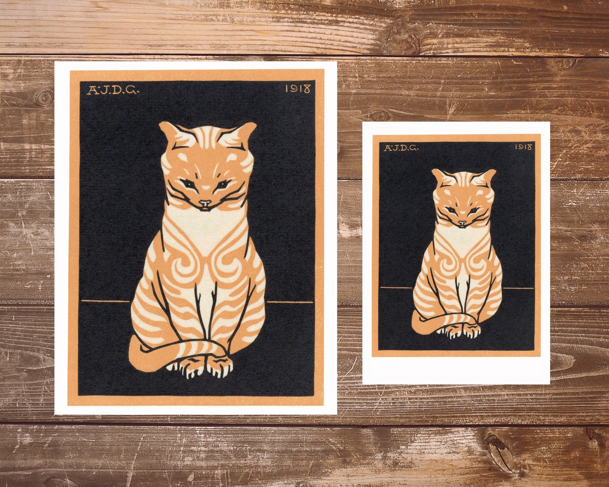 Vintage orange cat fine art print | Tabby cat | Art nouveau animal woodcut | Woodblock animal wall art | Julie de Graag