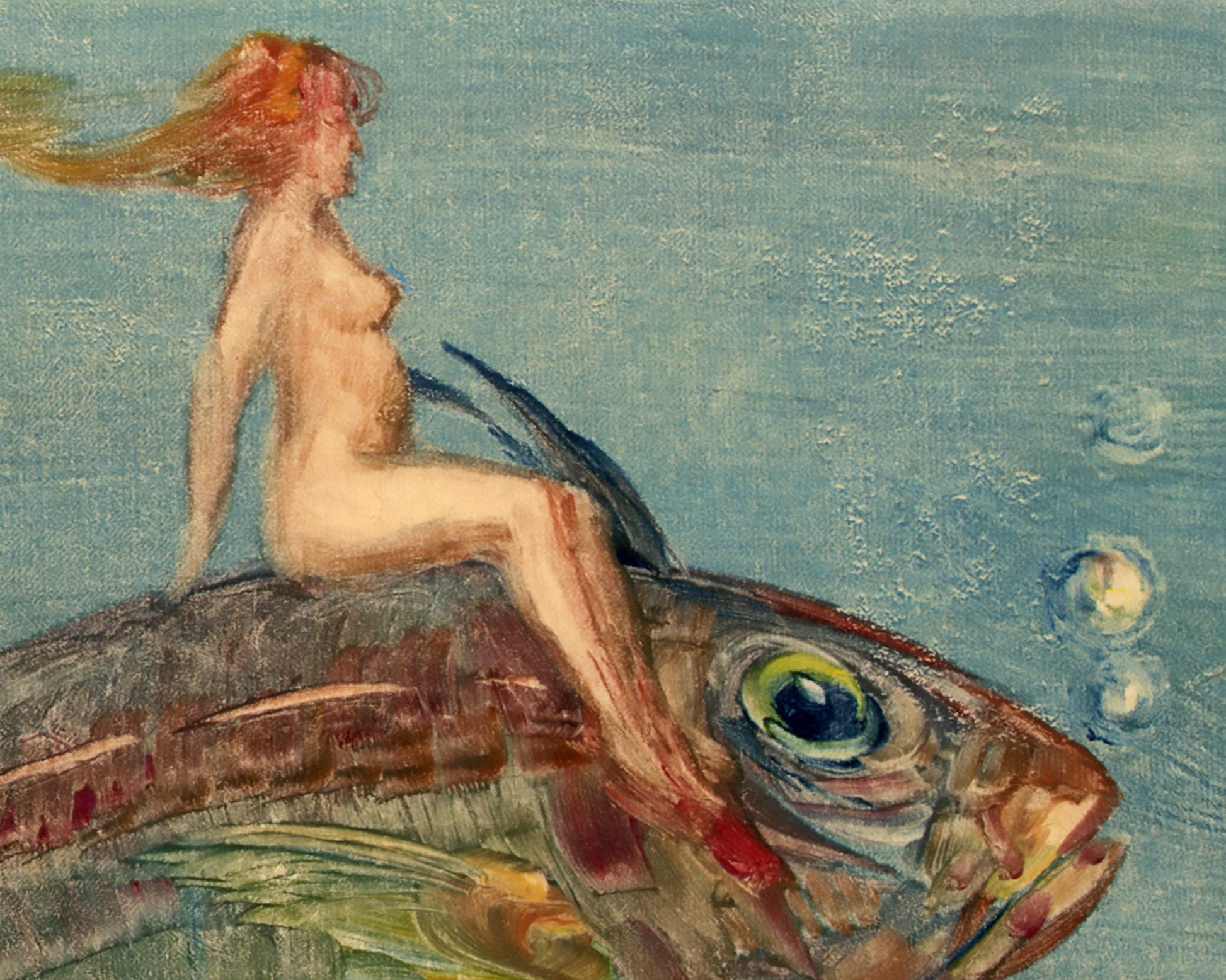 Woman riding a fish print | Valkyrie of the sea | Nude female painting | Nordic mythology wall art | Mexican artist | Xavier Martinez