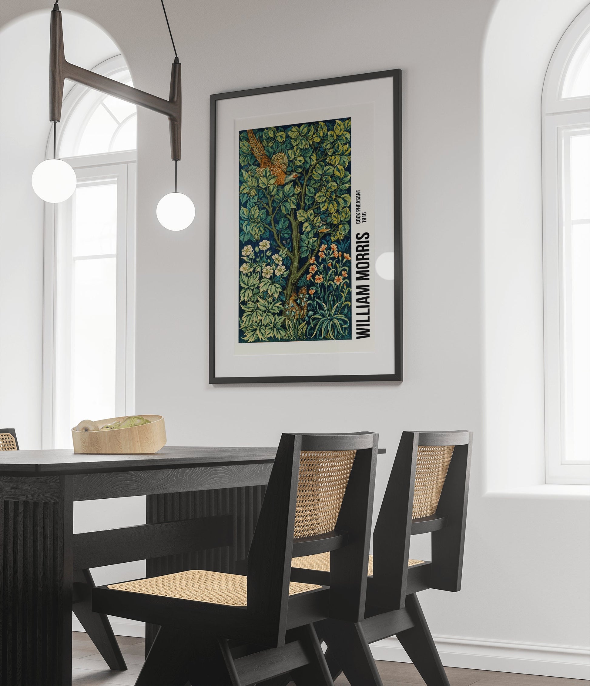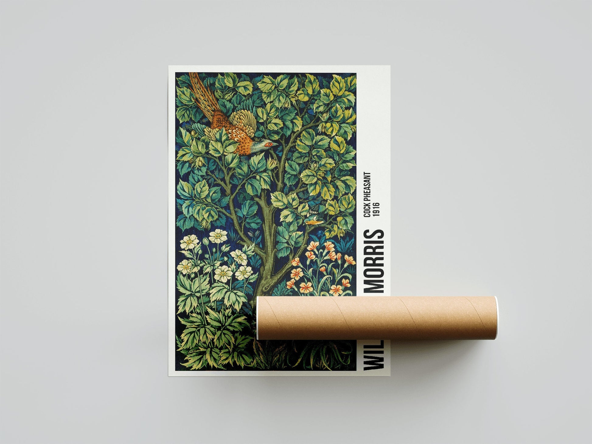 William Morris Cock Pheasant Exhibition Poster, William Morris Print, Art Nouveau, Cock Pheasant, Fabric Textured Background, Home Decor