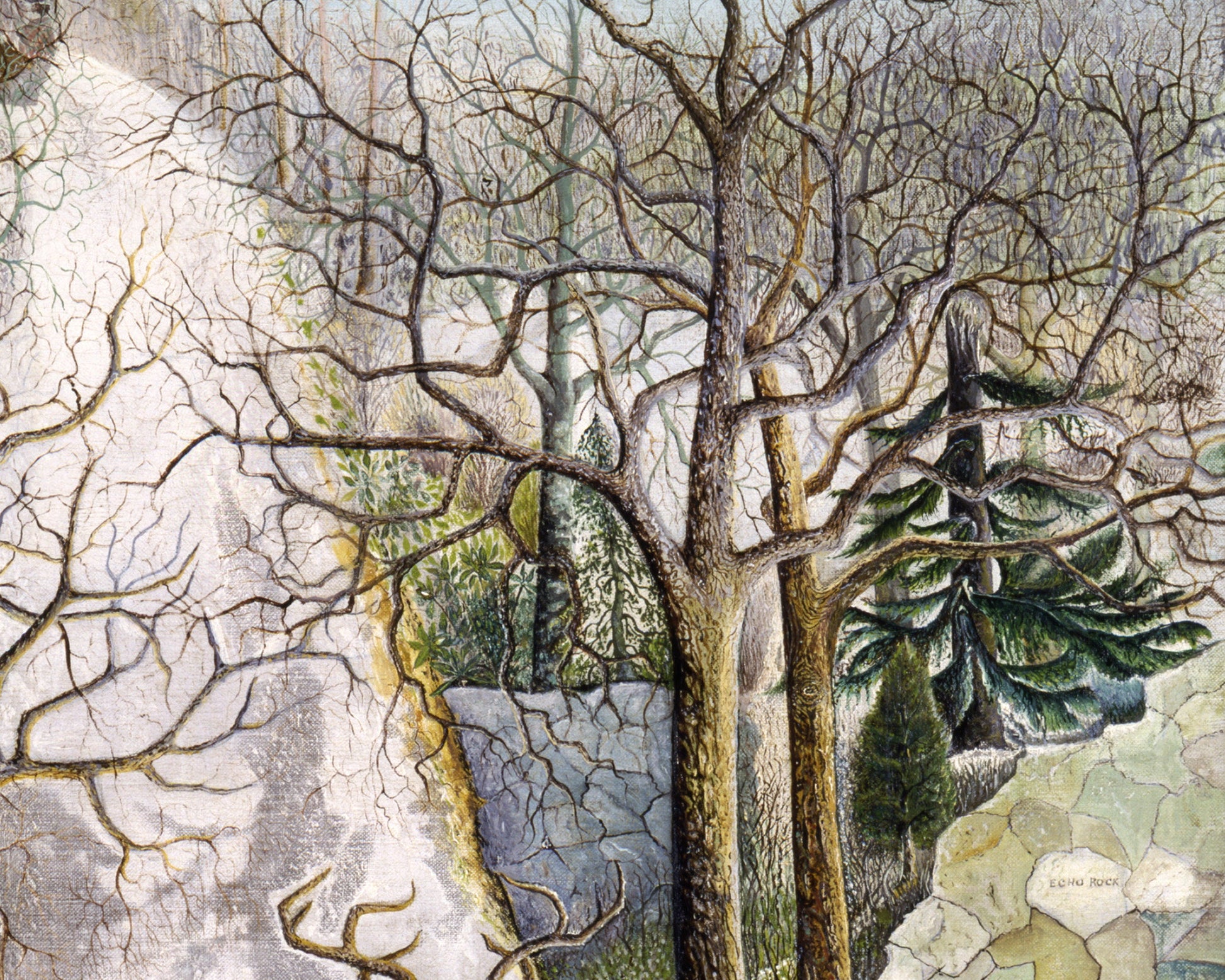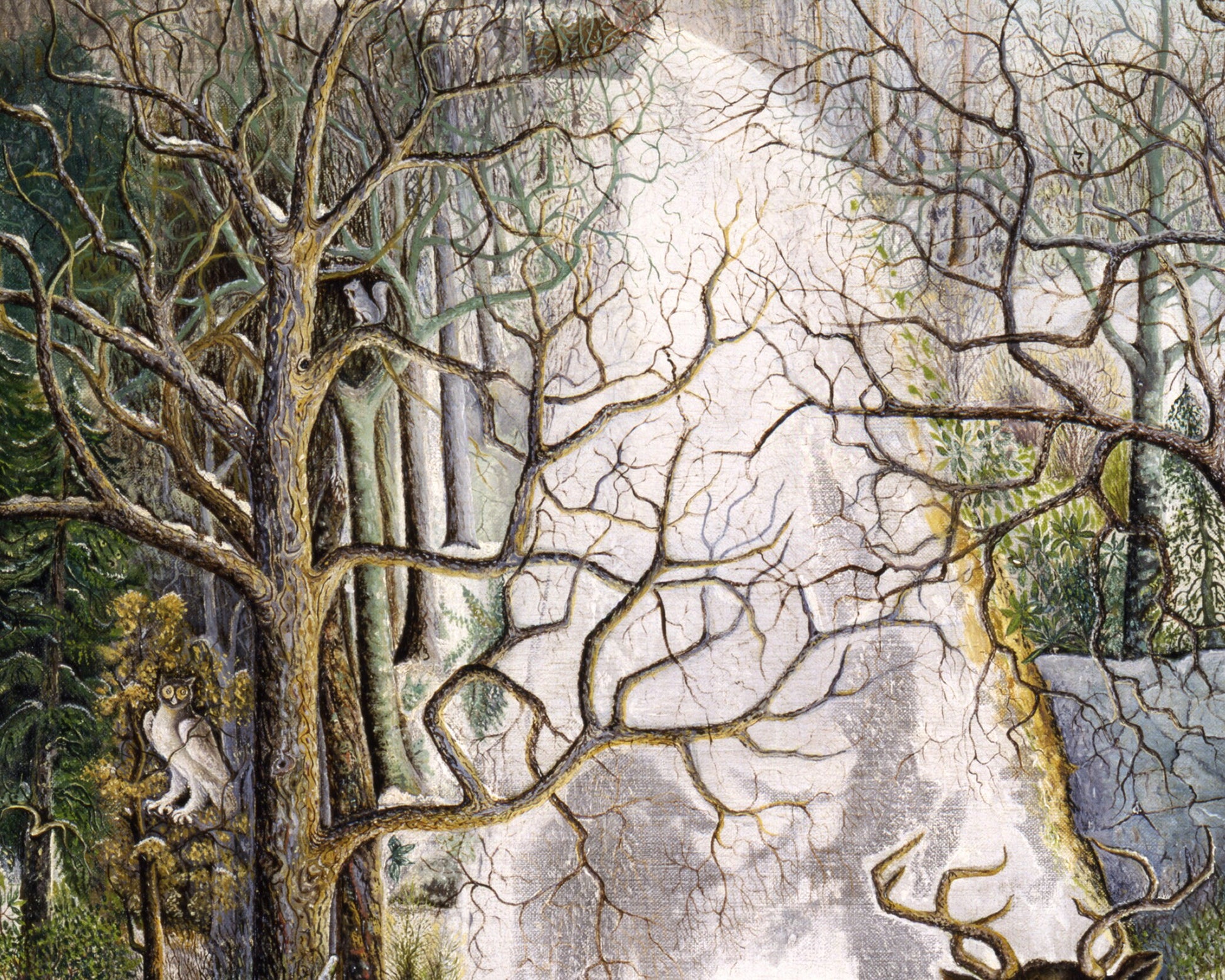 Stag at Echo rock fine art print | Deer, horse and owl painting | Vintage Americana folk art | Wild animal wall art | Primitive art
