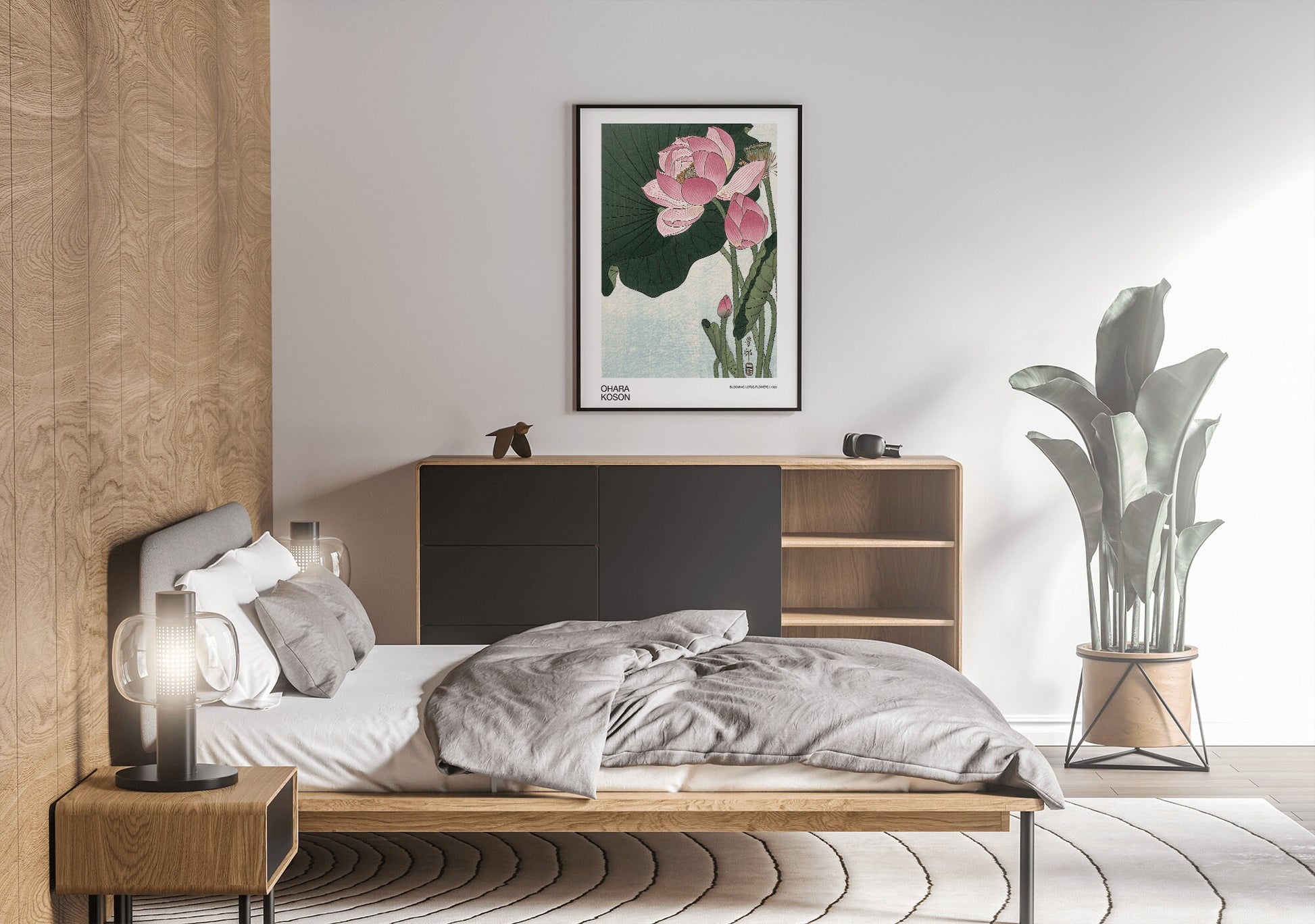 Ohara Koson - Impresión artística japonesa de flores de loto florecientes, decoración del hogar, arte de pared, arte japonés, impresión botánica, arte de pared botánico, arte de pared de decoración del hogar, impresión de arte japonés, impresión koson, impresión ohara koson, impresión en madera, arte de pared en madera, decoración japonesa, impresión japonesa, flor de loto, impresión giclée