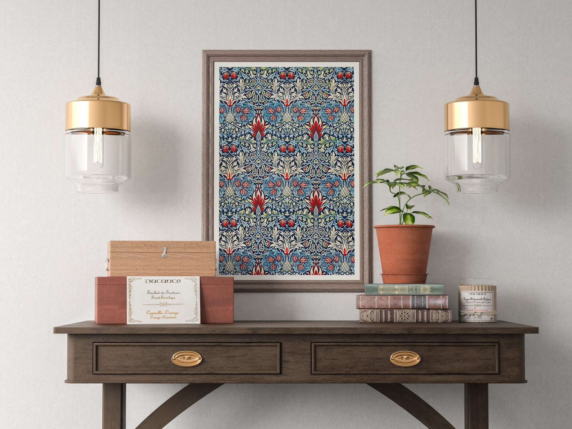 Póster de exposición con estampado de cabeza de serpiente de William Morris, impresión de William Morris, Art Nouveau, estilo victoriano, fondo con textura de tela, decoración del hogar