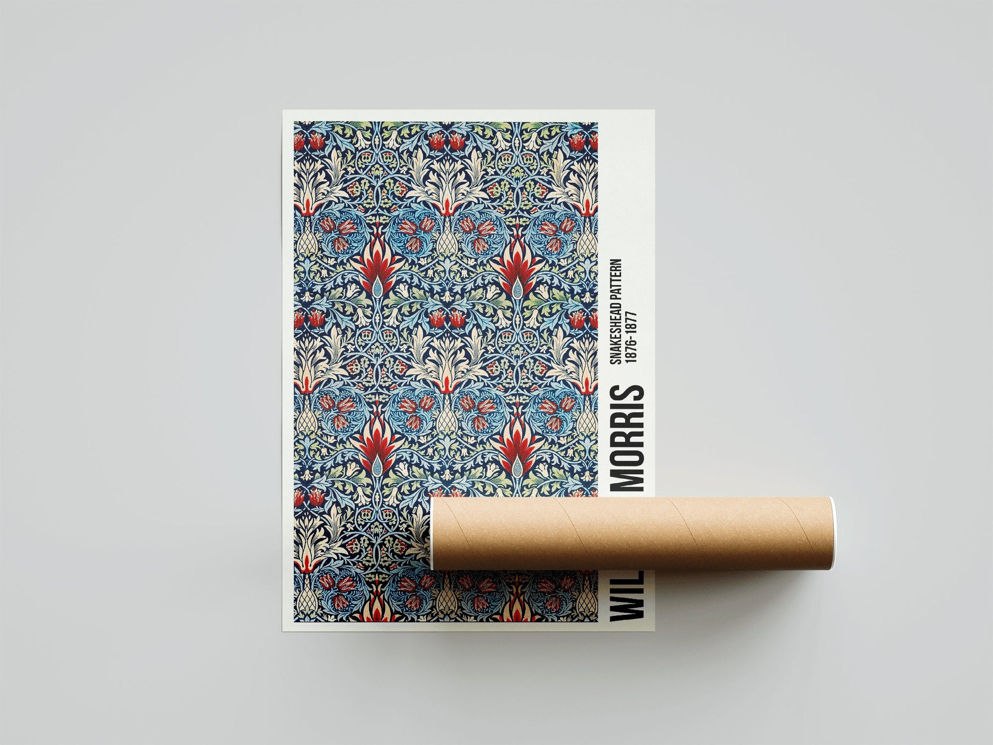 Póster de exposición con estampado de cabeza de serpiente de William Morris, impresión de William Morris, Art Nouveau, estilo victoriano, fondo con textura de tela, póster de exposición de decoración del hogar, impresión de exposición, impresión de museo, exposición vintage, póster de museo, William Morris, estampado de Morris, estampado floral, estampado floral de Morris, Art Nouveau, estampado floral vintage, cabeza de serpiente de Morris, estampado de cabeza de serpiente
