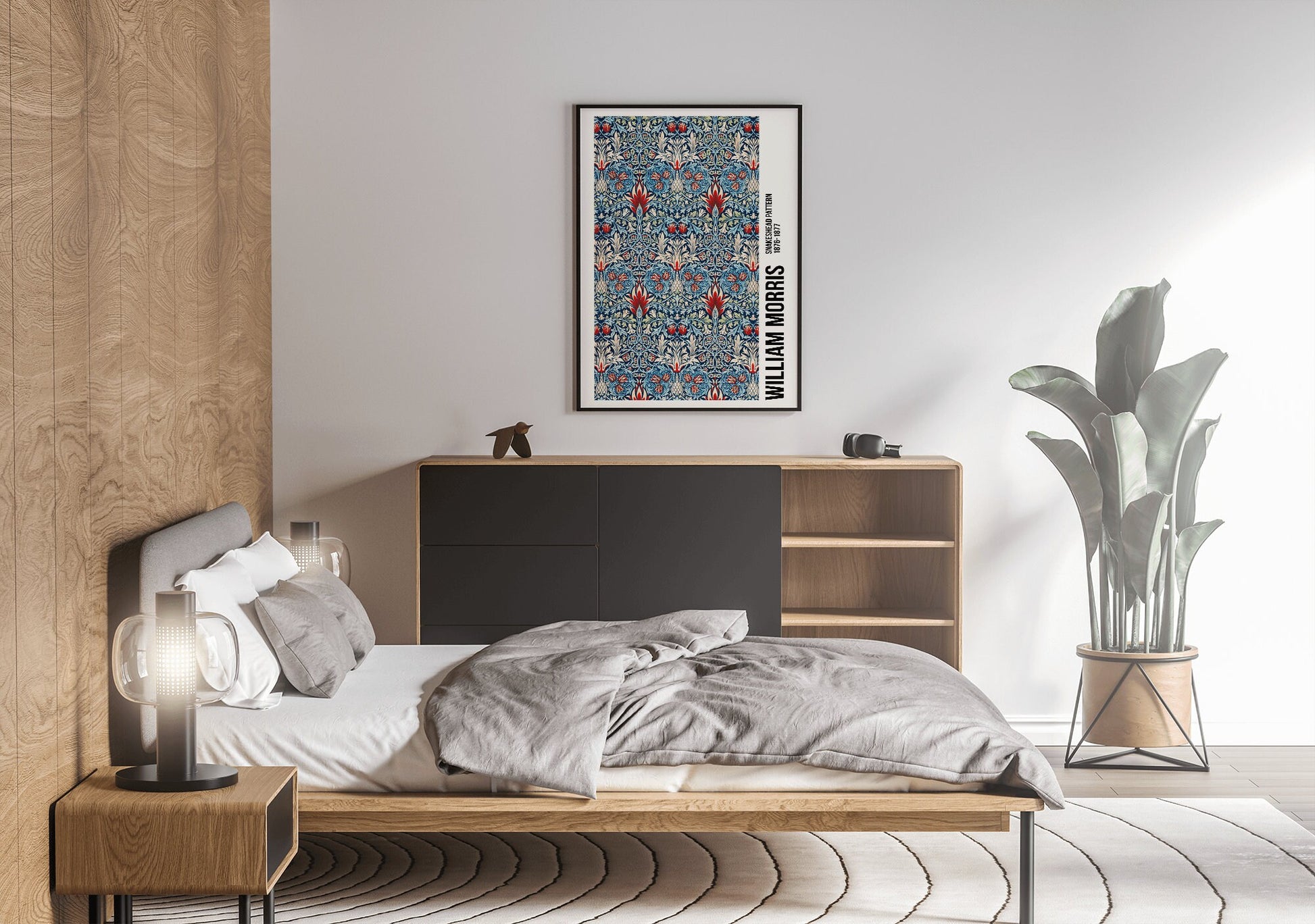 Póster de exposición con estampado de cabeza de serpiente de William Morris, impresión de William Morris, Art Nouveau, estilo victoriano, fondo con textura de tela, decoración del hogar