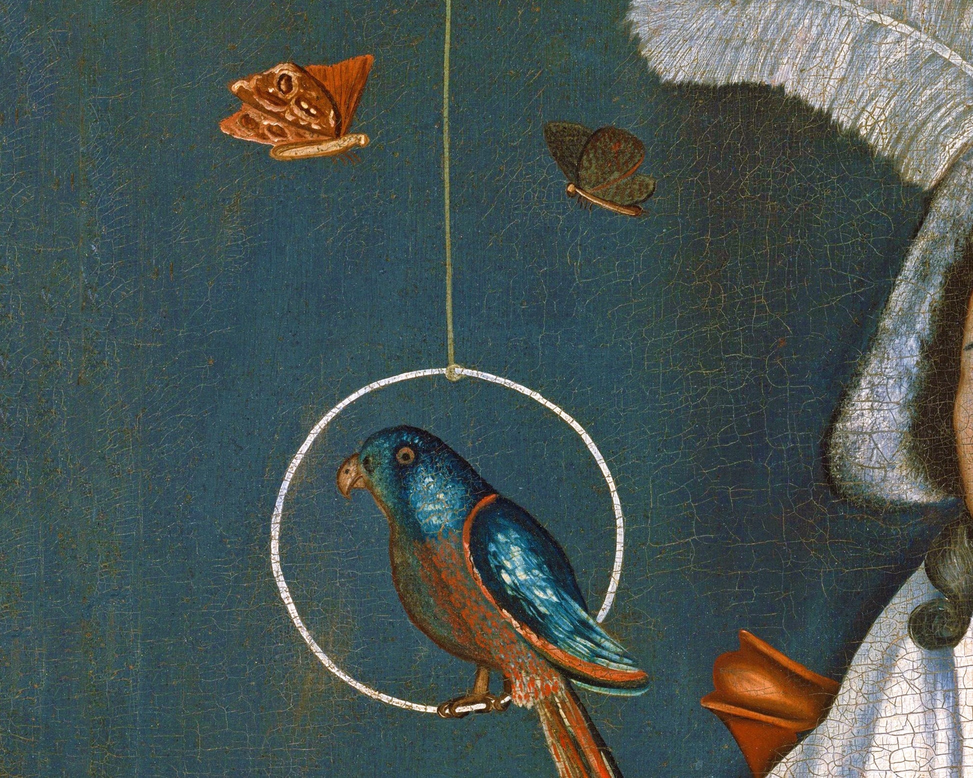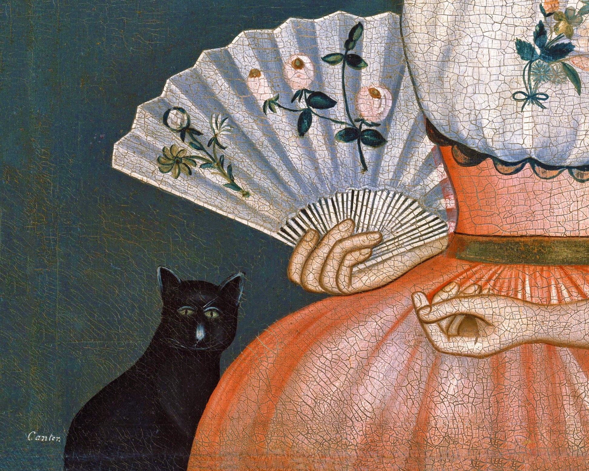 Retrato de arte popular estadounidense | Mujer con sus mascotas | Arte con pájaros, mariposas y gatos | Arte mural americano | Moda del siglo XVIII | Rufus Hathaway