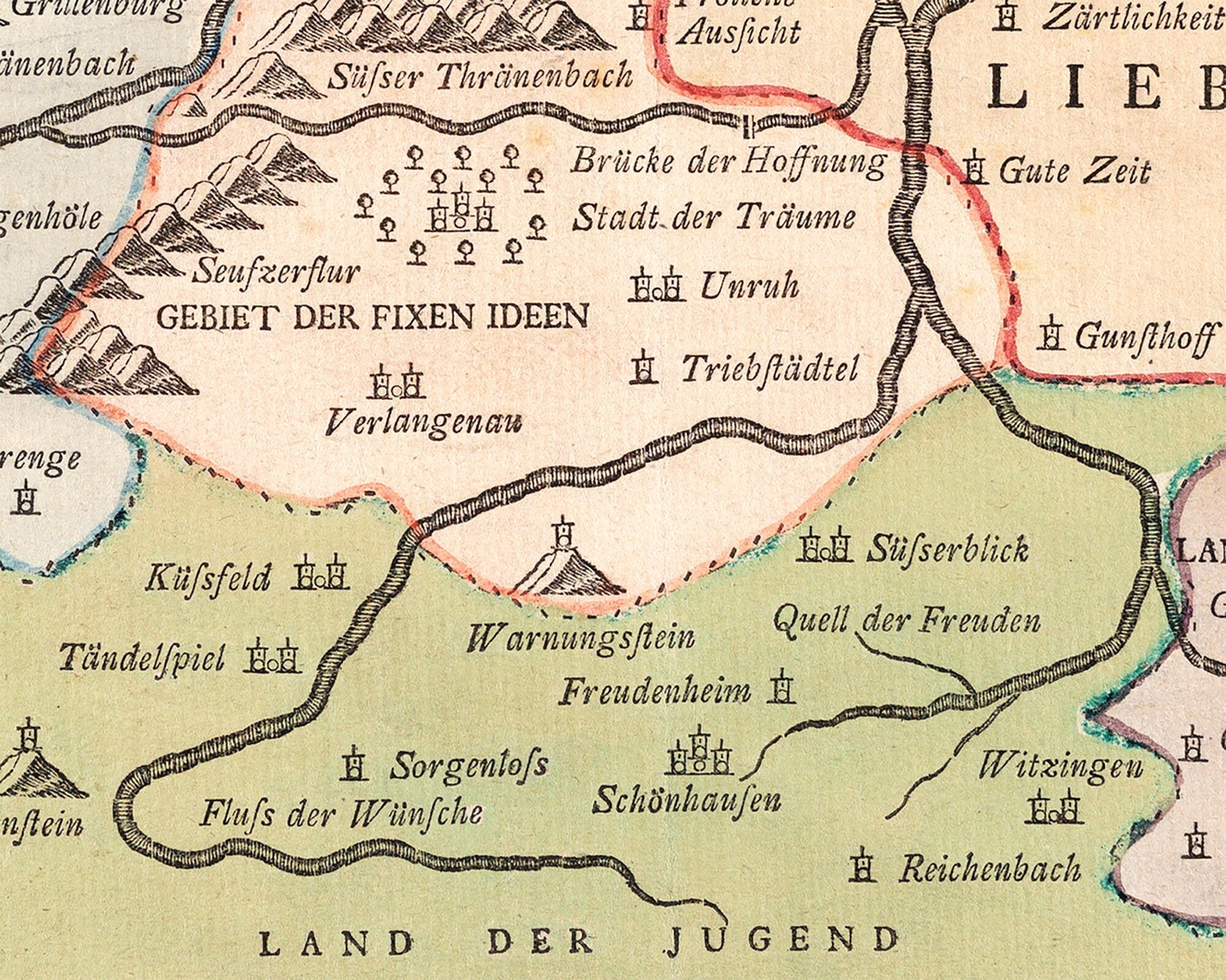 Mapa antiguo alemán del amor | Mapa de relaciones vintage de 1777 | Amor y San Valentín | Regalo de compromiso, boda o aniversario | Vintage moderno