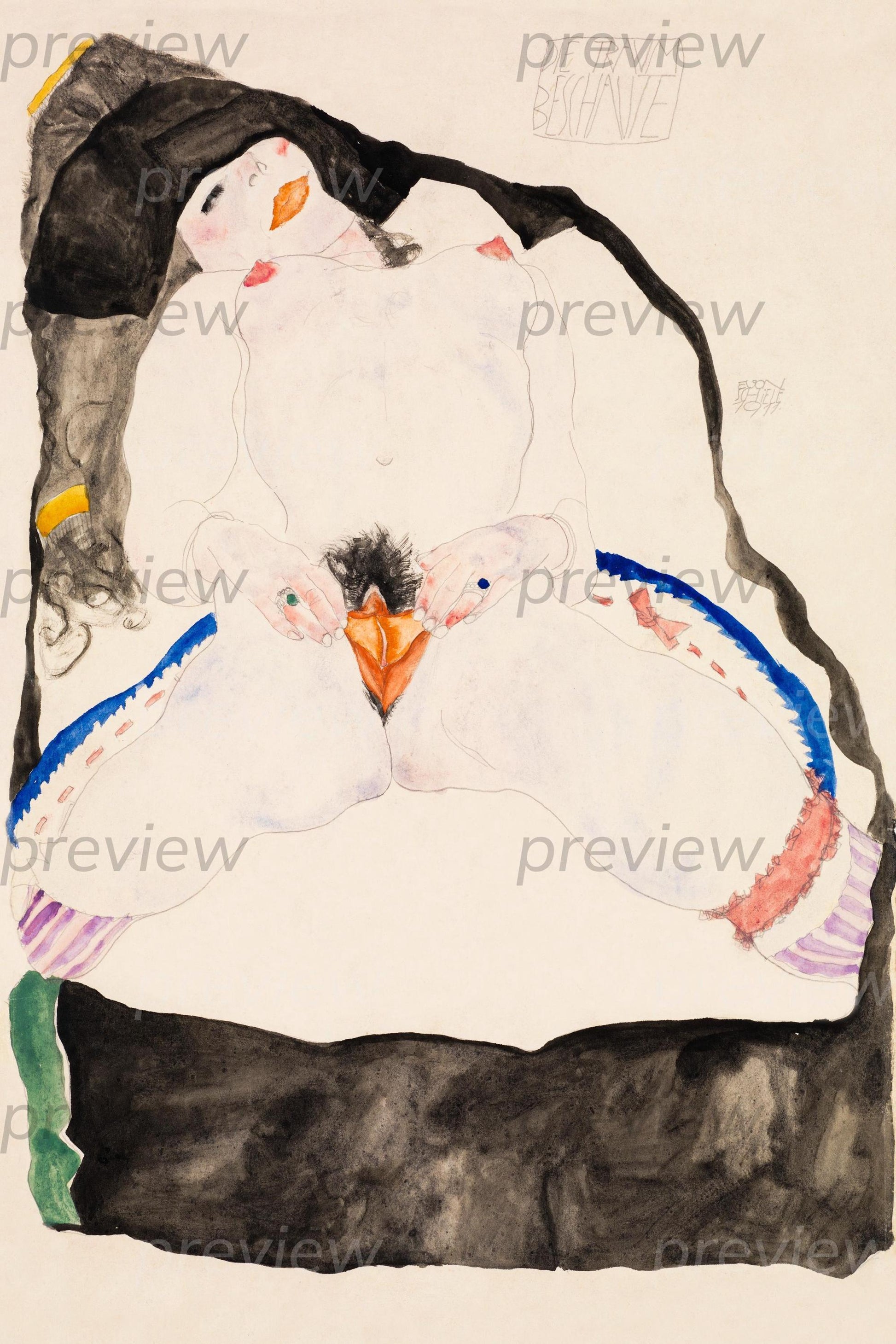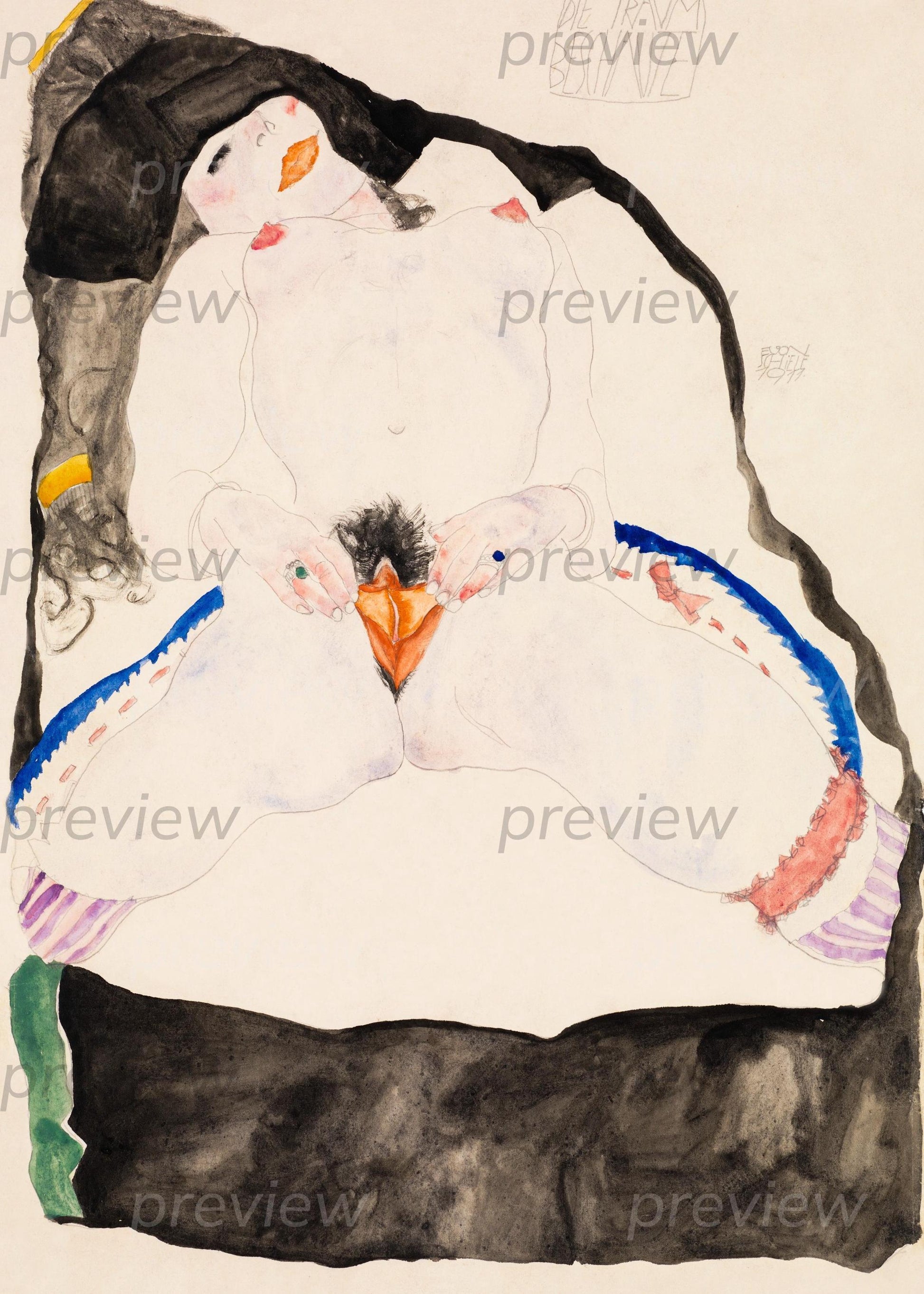 Imagen digital imprimible de vulva y vagina con arte lineal erótico queer Descarga instantánea Moderna - Observado en un sueño por Egon Schiele Descarga digital
