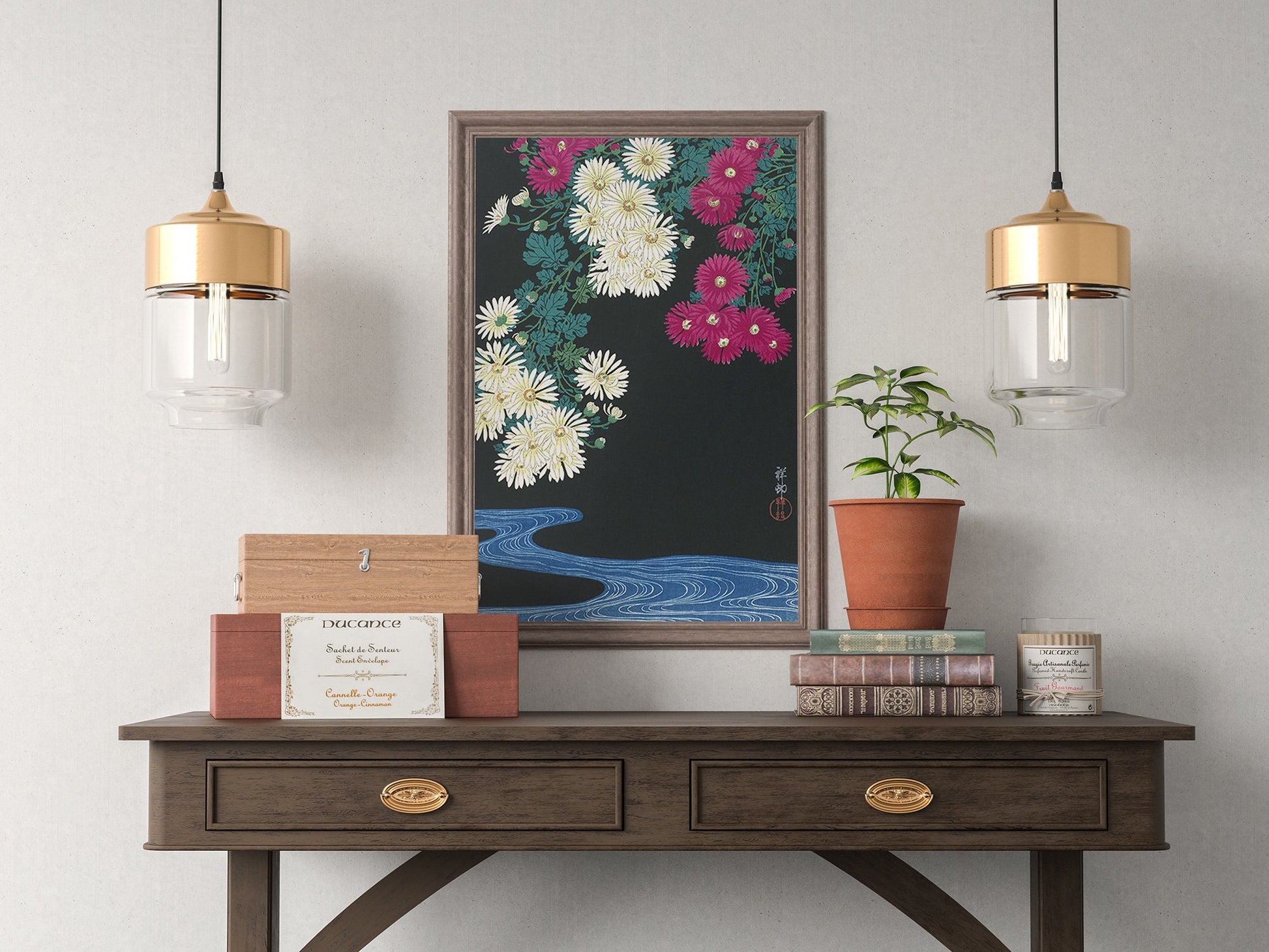 Ohara Koson - Lámina artística japonesa de crisantemos, decoración del hogar, arte de pared