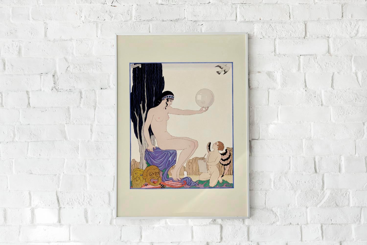 Póster vintage de Mujer sentada y querubín