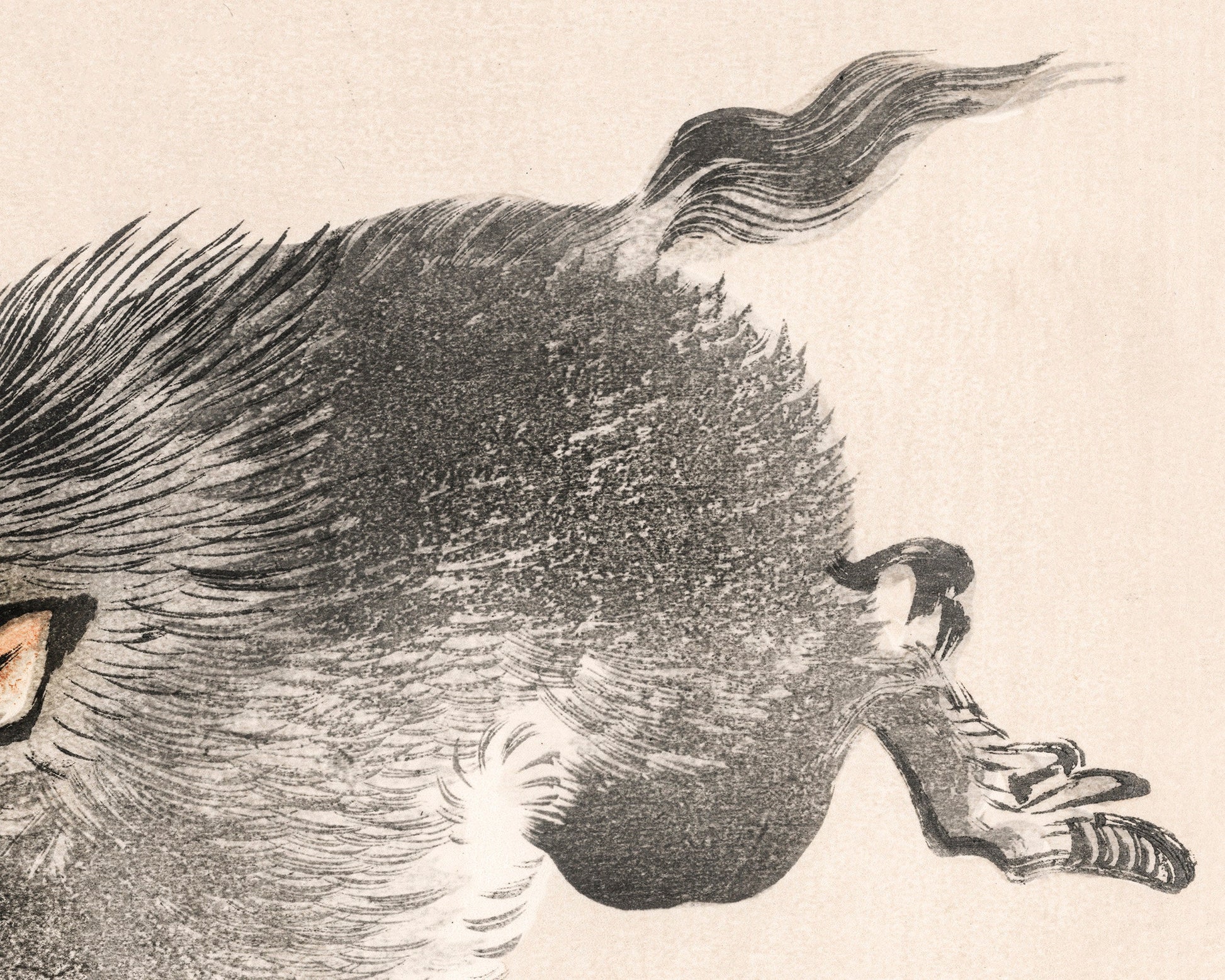 Impresión artística vintage de lobo japonés | Bloque de madera Kōno Bairei | Arte mural de animales salvajes | Lobo sonriente corriendo | Arte moderno y minimalista | Arte animal asiático