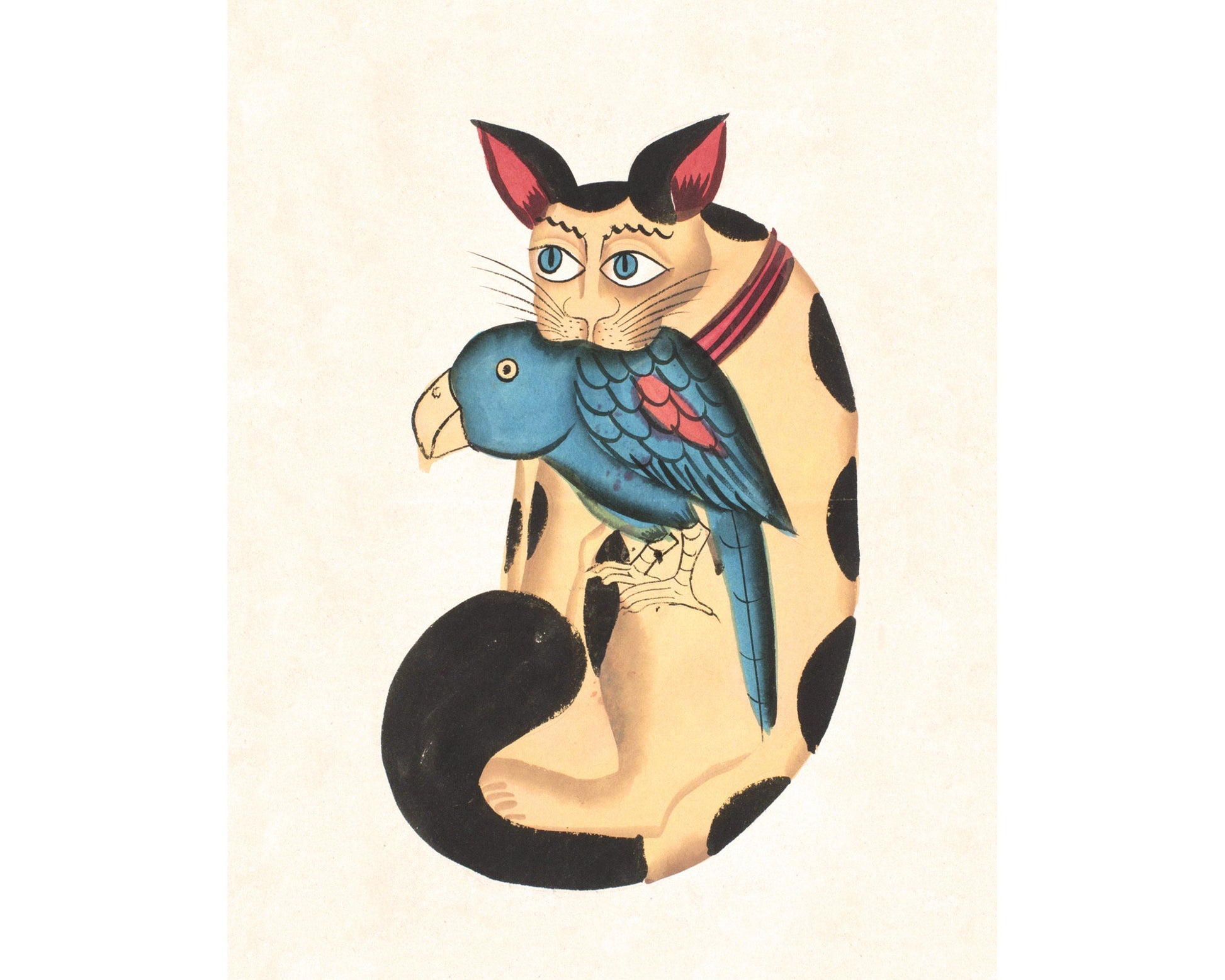 Bird folk art | Pelican with young | Mary Ann Willson | Americana wall art | Naive drawing | Female artist | Kaleidoscope pattern print