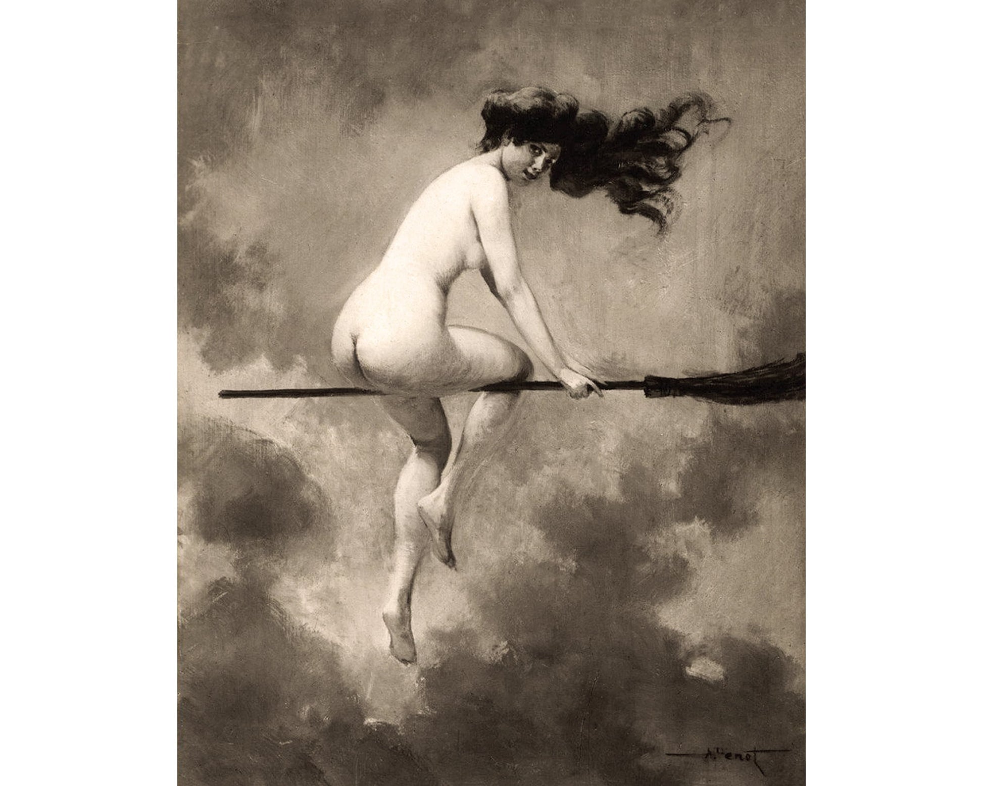 Digital Download Wall Art - Départ pour le Sabbat - Witch on her broom | Vintage nude woman print | Albert Joseph Penot | Gothic wall art | Halloween art print | Modern vintage decor
