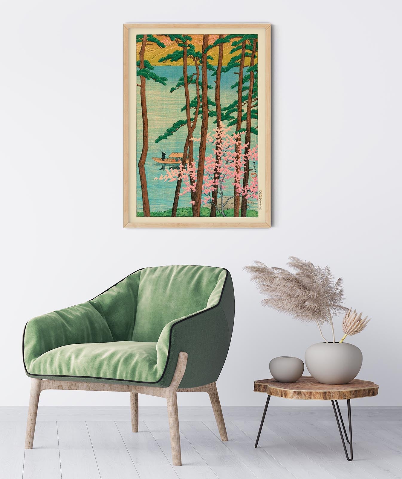 Spring in Arashiyama by Hasui All posters and art prints are printed in-house on archival heavyweight matte paper, on wide format Canon professional series fine art pigment-based printers.Oversized and custom sized order requests are always welcome, however additional processing and shippings times are typically required. --- wholesale_readyAsian Art, Hasui, Hasui Kawase, Home decor, Japanese Art, Japanese Poster, Japanese Print, Japanese Woodblock, lake, landscape, Living Room, Living Room Art, Living room decor, new, shin-hanga, spring, Ukiyo-e, Ukiyoe Modern, Vintage Poster, Wall Art, woodblock, Woodcut Printjpn10288